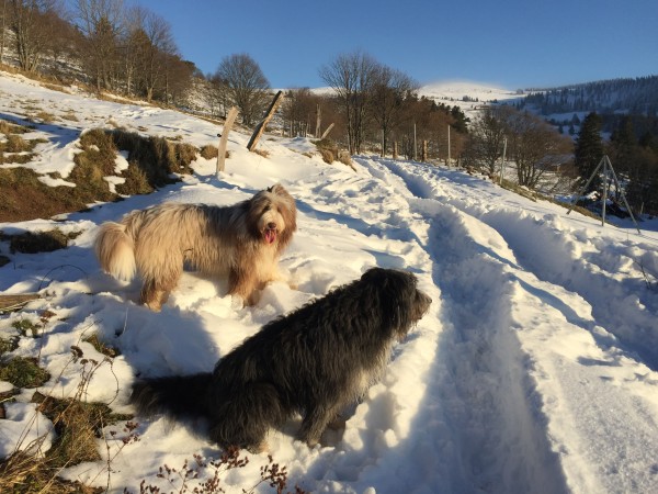 Ici Baxter avec Wolfie, ils vivent en bonne intelligence, m'accompagnent en montagne et veillent sur leur domaine.