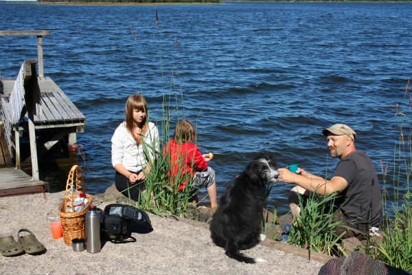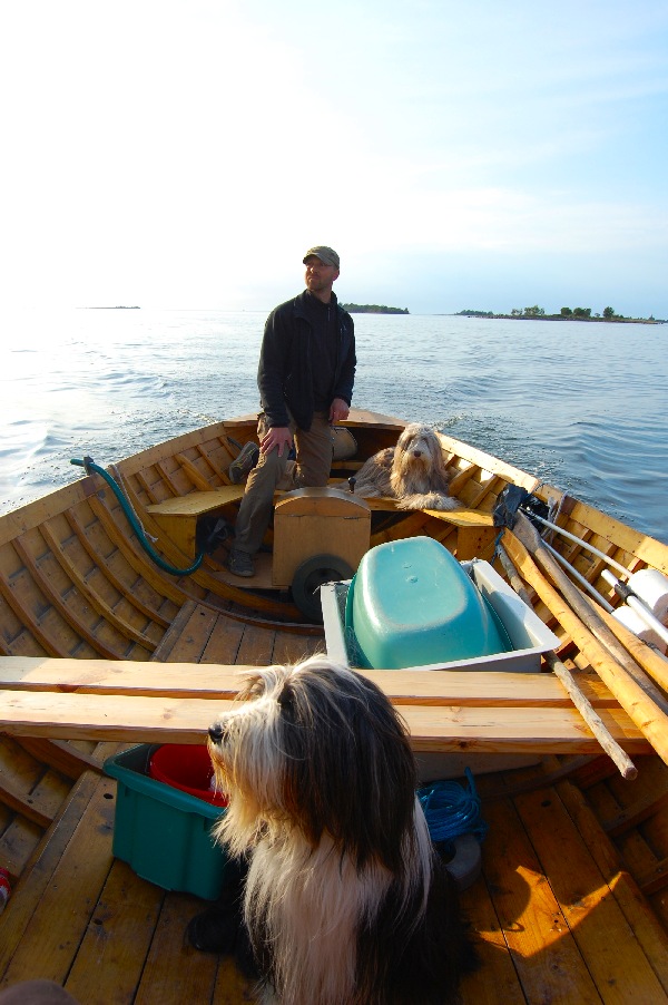 Voici Jari chez lui en Finlande sur le bateau qu'il a construit lui-même, Rilla au premier plan.