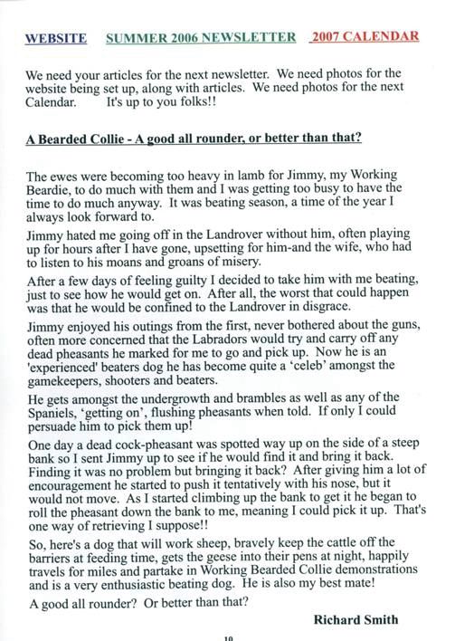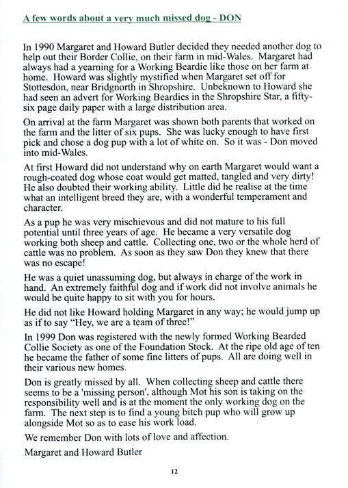 Articles parus dans la revue de la "Working Bearded Collie Association" N° 12 (Hiver 2005)